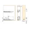 Il offre un réglage de la façade de ±2 mm en vertical et ±1,5 mm en horizontal, ainsi qu'un réglage en hauteur intégré dans les coulisses (4,5 mm), ce qui facilite un ajustement précis pour une installation parfaite. Il est conçu pour un montage sur le côté gauche et est compatible avec les modules dotés de panneaux de 16, 18 et 19 mm, ce qui le rend polyvalent et adaptable à différentes configurations.