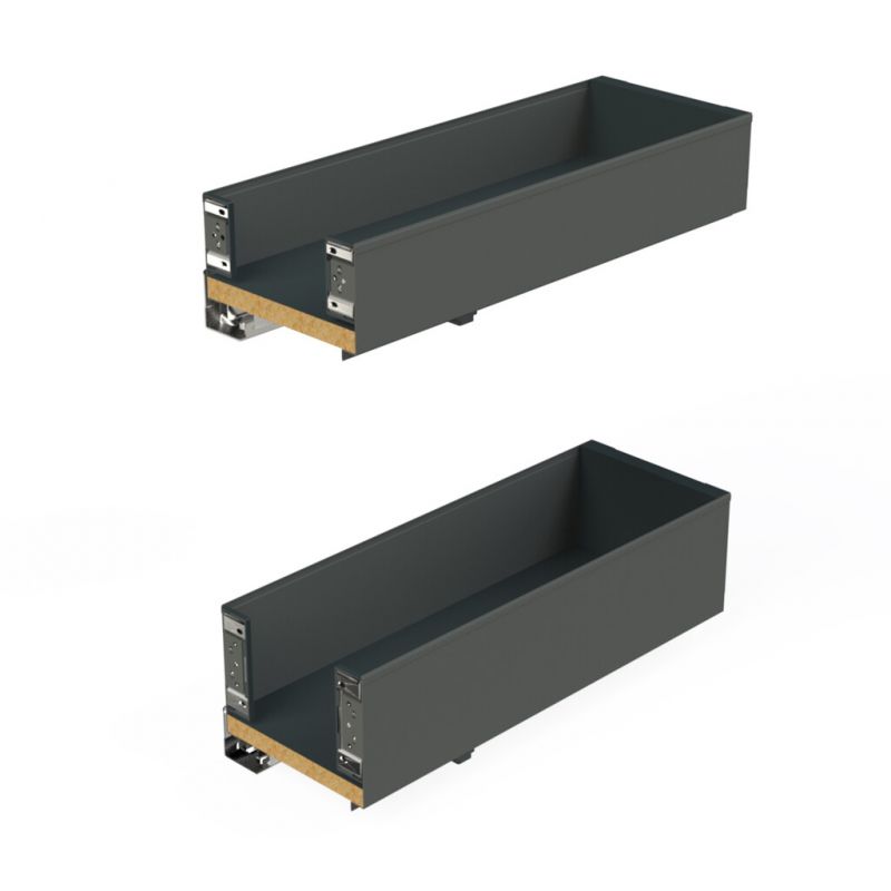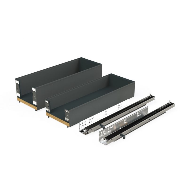 L'ensemble comprend les côtés complets (hauteur 122 mm et 88 mm) déjà assemblés, ainsi que les coulisses Silver-L à sortie totale et les plaques de recouvrement pour couvrir les réglages, garantissant ainsi une finition impeccable.