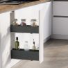 Pensé pour optimiser l’espace dans des meubles de largeur 200 mm, ce système extractible vous permet de ranger vos bouteilles ou épices en toute sécurité, tout en les gardant parfaitement accessibles. Plus besoin de fouiller dans vos placards : d’un simple geste, vous faites coulisser les étagères pour une visibilité immédiate. Ses étagères à deux hauteurs (122 mm et 88 mm) permettent de stocker différents formats de contenants, des plus petits aux plus volumineux.