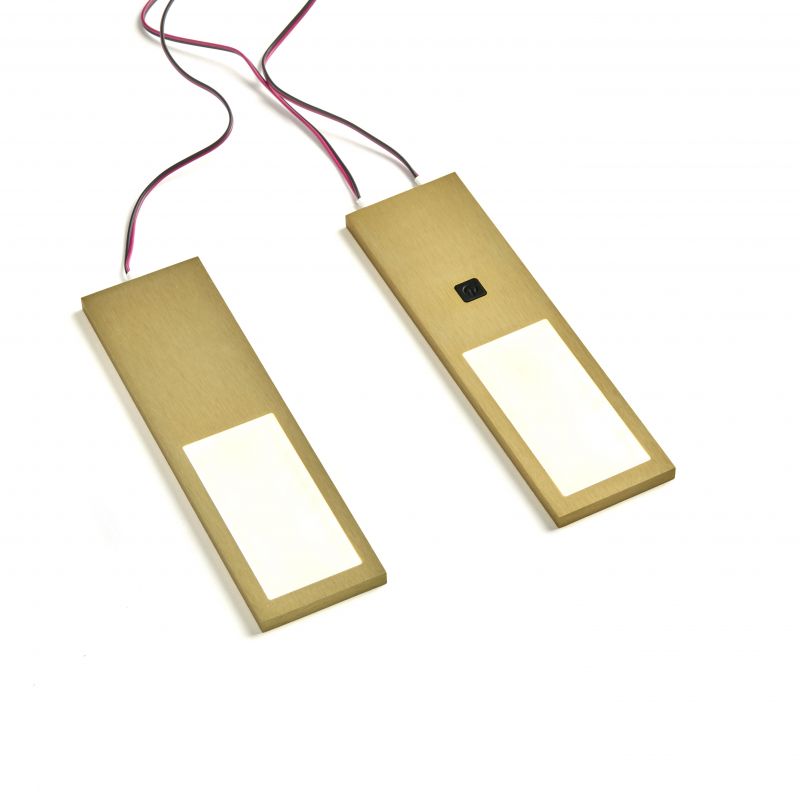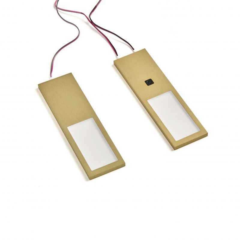 Kit 2 profils LED extra-plats avec interrupteur et convertisseur - finition Or brossé - puissance 4W / 240lm - 12VDC - 4000K