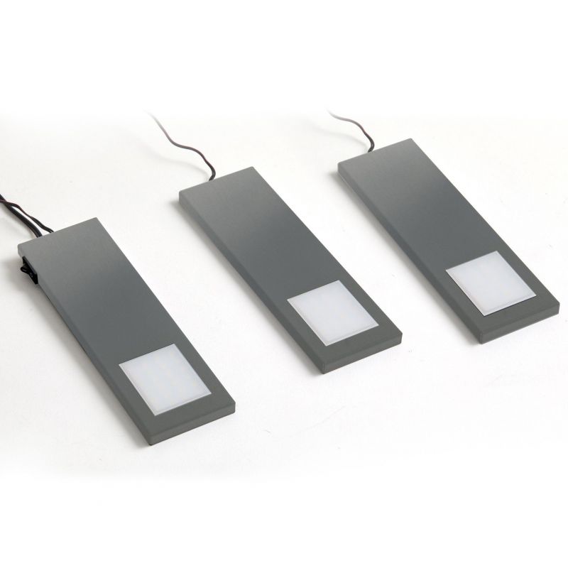 Kit de 3 profils LED extra-plat avec interrupteur et convertisseur - Inox brossé - puissance 6W / 560lm- 12V DC - 3300 K