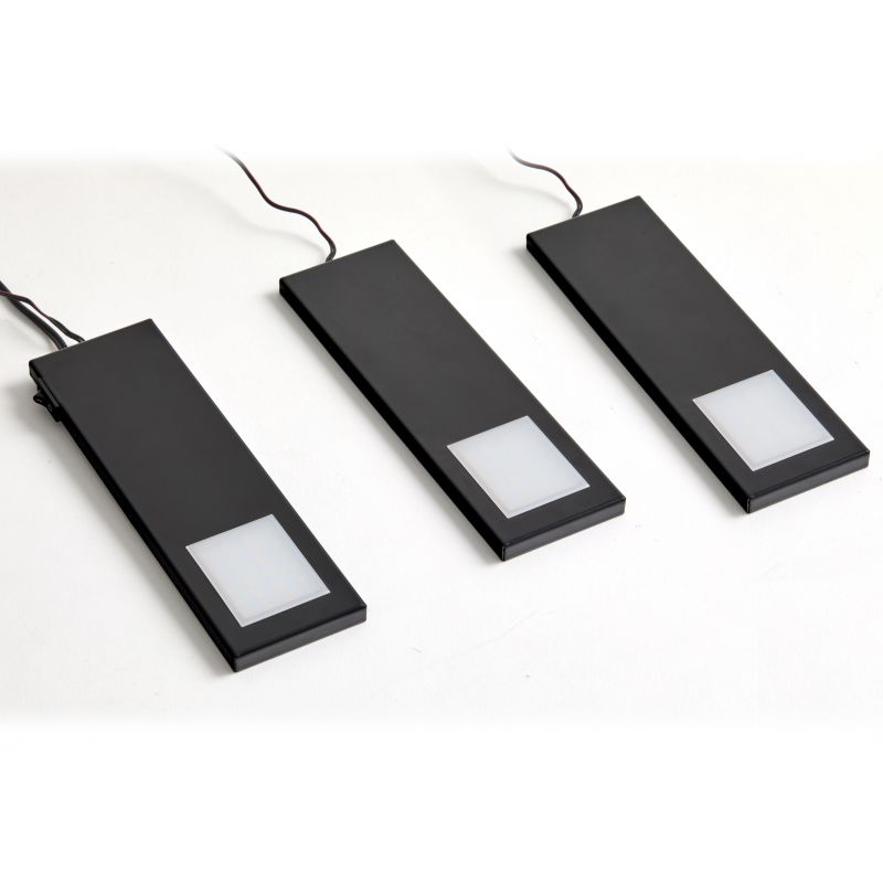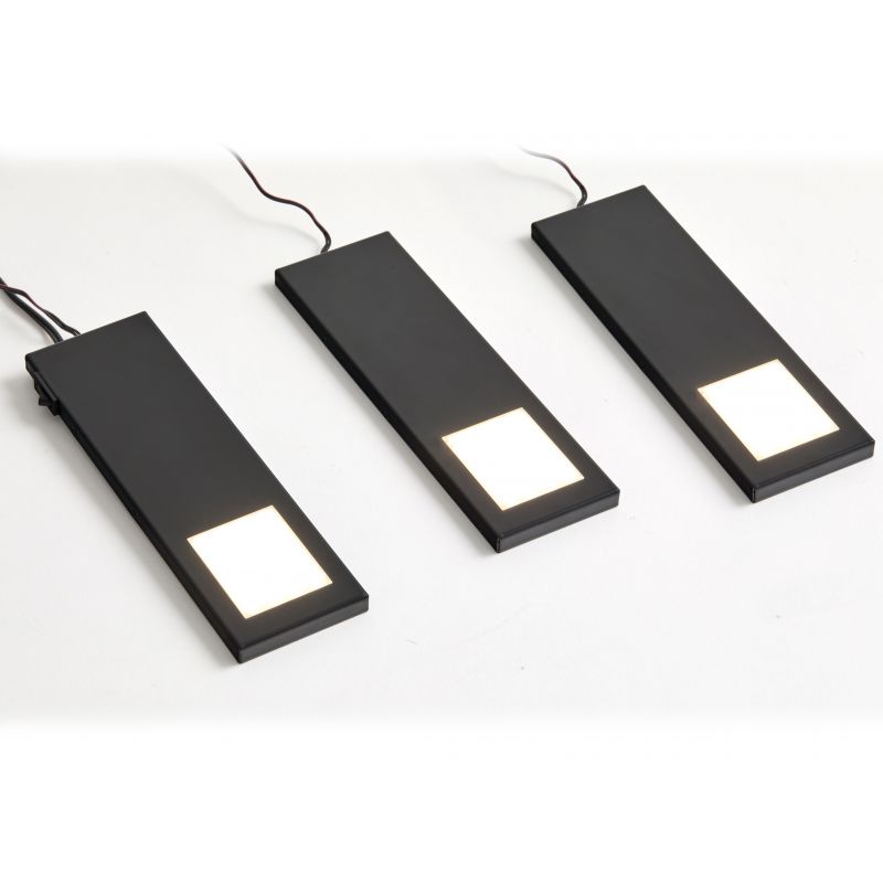 Kit de 3 profils LED extra-plat avec interrupteur et convertisseur - Noir mat - puissance 6W / 560lm- 12V DC - 3300 K