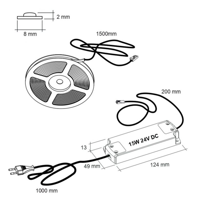 Kit LED COB flexible en rouleau de 2,5m avec convertisseur 15W et câble d'alimentation de 1m - 3000K (blanc chaud) -5W/m