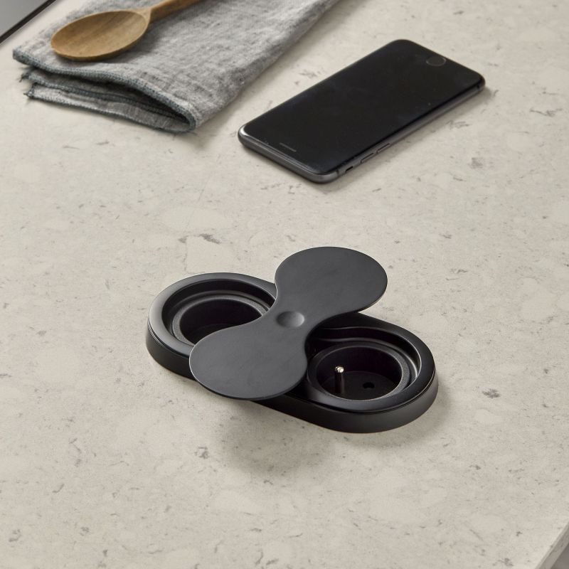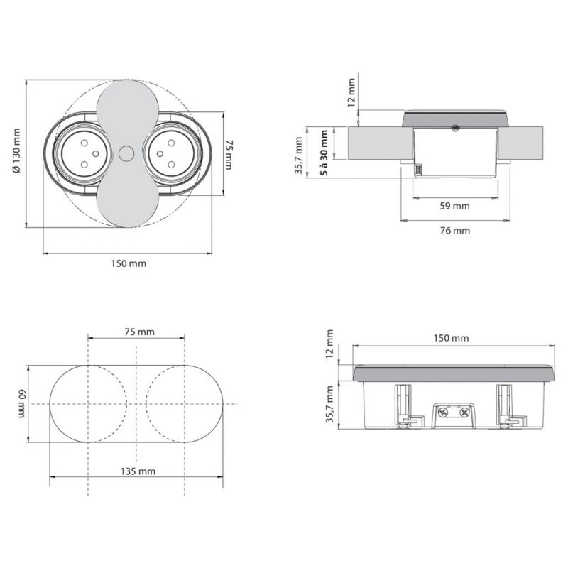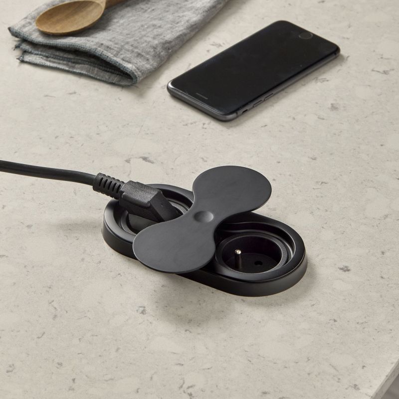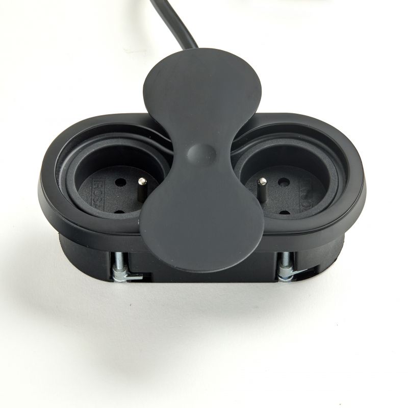 Bloc 2 prises EIGHT avec réhausse en métal - A encastrer dans un plan de travail - Finition noir mat (RAL9005)