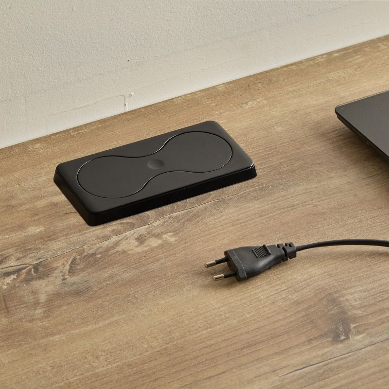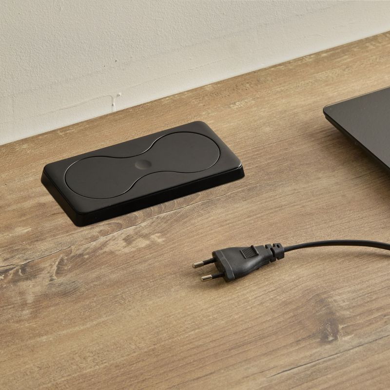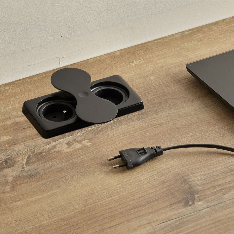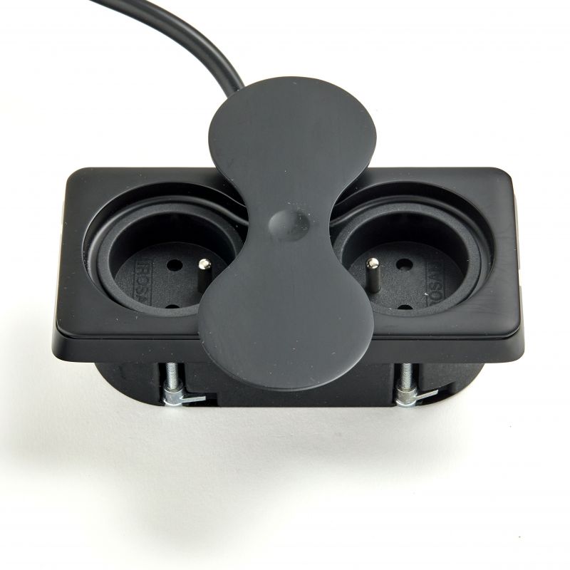 Bloc 2 prises EIGHT SQUARE rectangulaire avec réhausse en métal - A encastrer dans un plan de travail - Finition noir mat