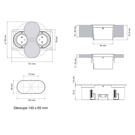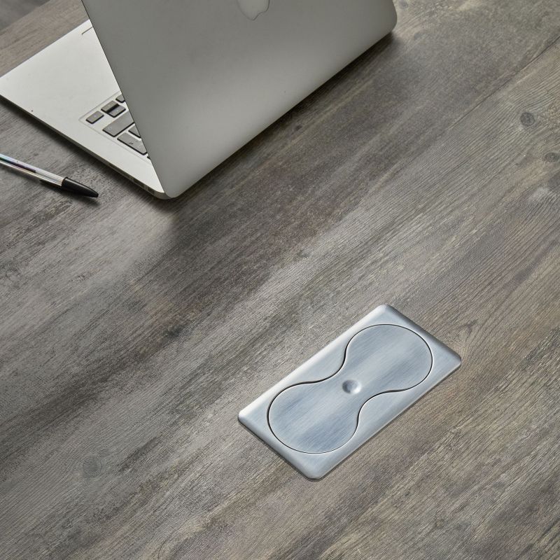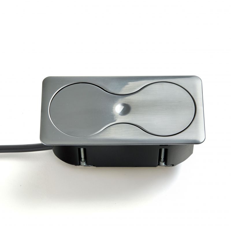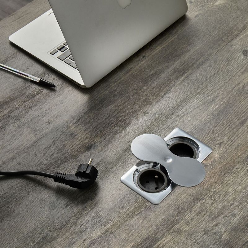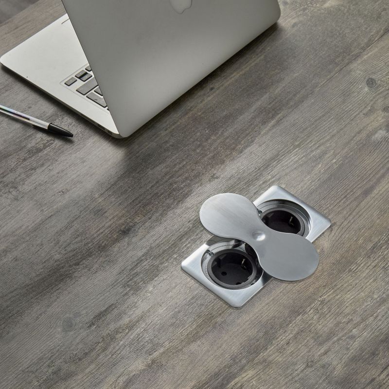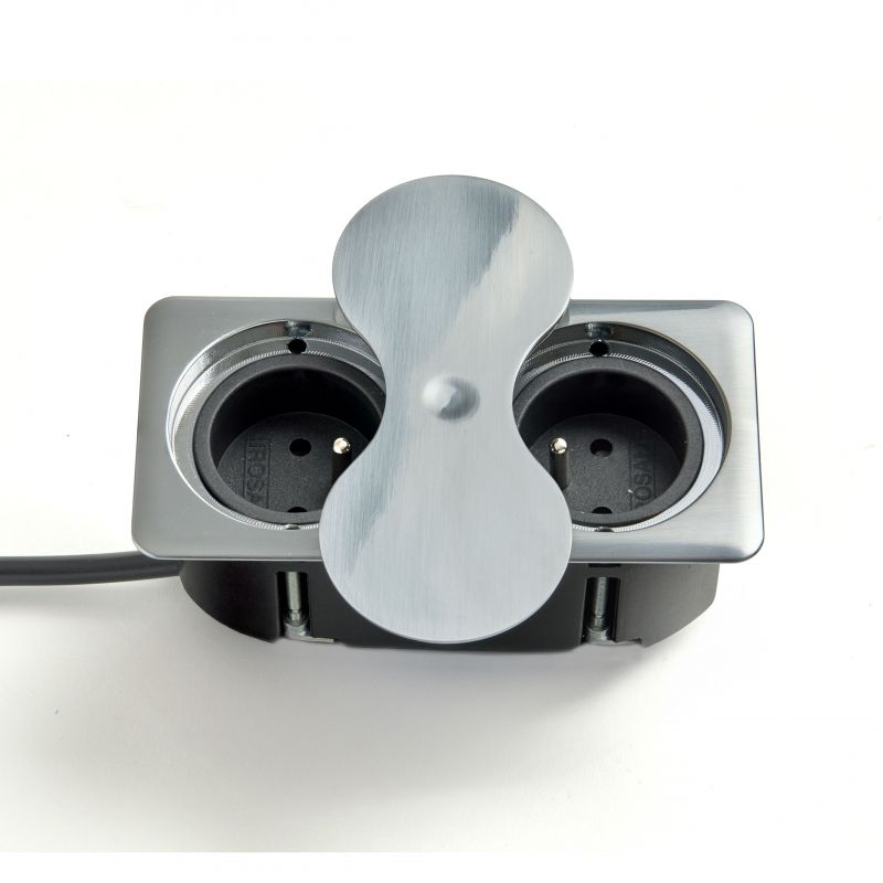 Bloc 2 prises EIGHT SQUARE UP rectangulaire avec fixation par le dessus - A encastrer dans un plan de travail - Inox brossé