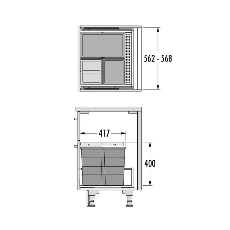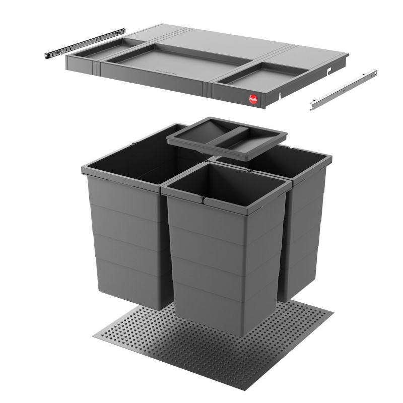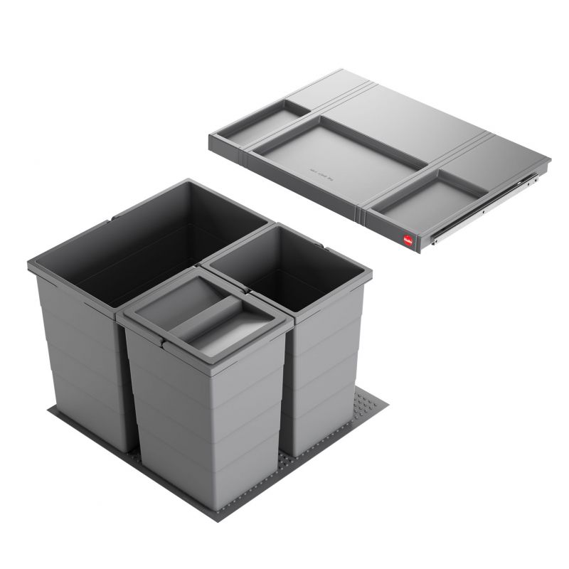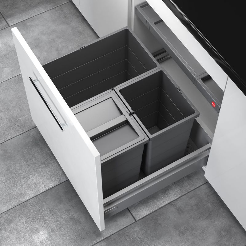 Collecteur composé de 3 seaux avec couvercle : 1x28L + 2x13L - pour tiroir de 600mm - H.400mm