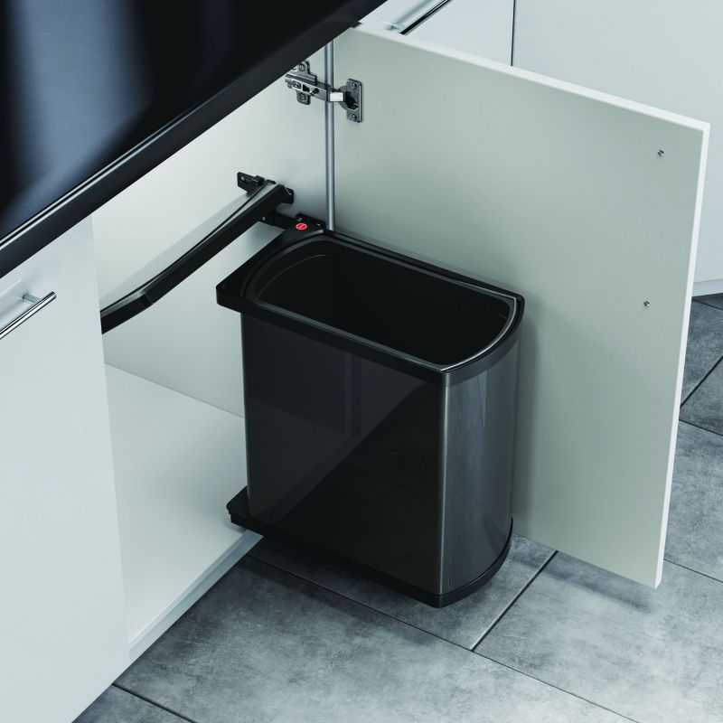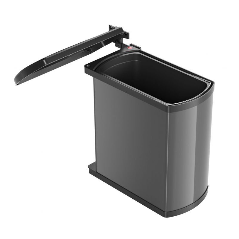 Poubelle automatique gris foncé noir de 18L - l. 388 x P.203 x H. 420mm - Fixation sur par vis sur porte et caisson