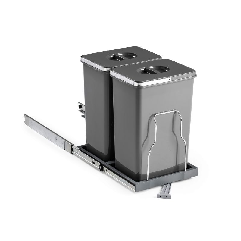 Poubelle pour meuble de 450mm avec porte à charnières - Ouverture automatique - 2 x 20L