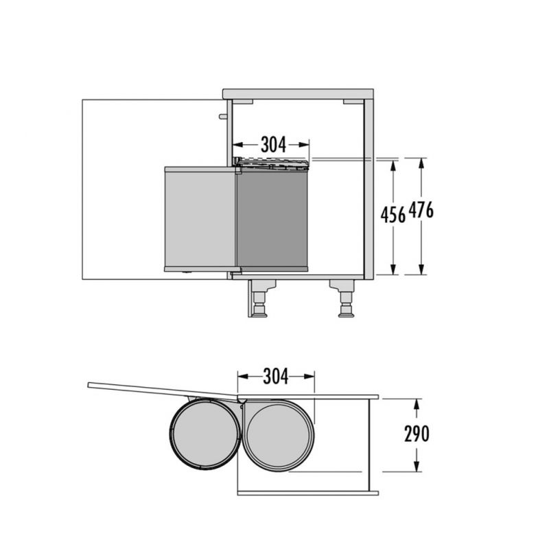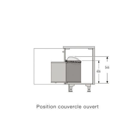 Poubelle ronde automatique de 20L - l.290 x P. 304 x H. 456mm - fixation sur porte et caisson - pour meuble de 400mm