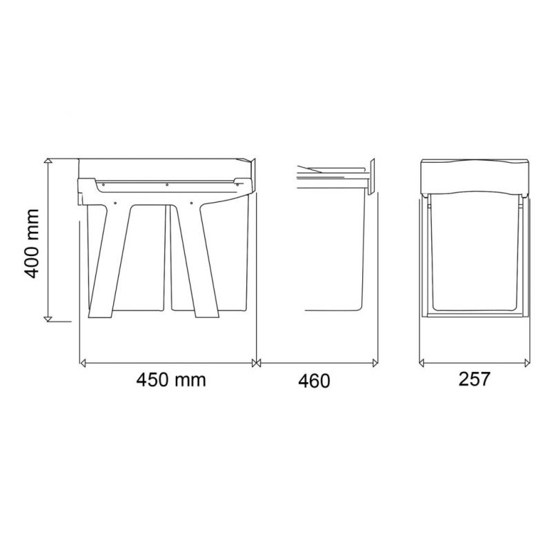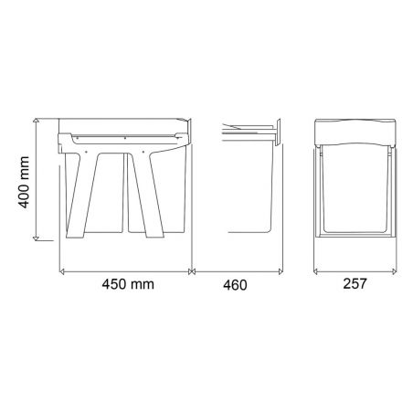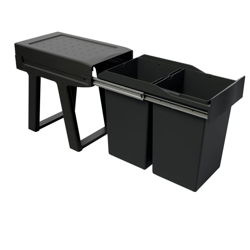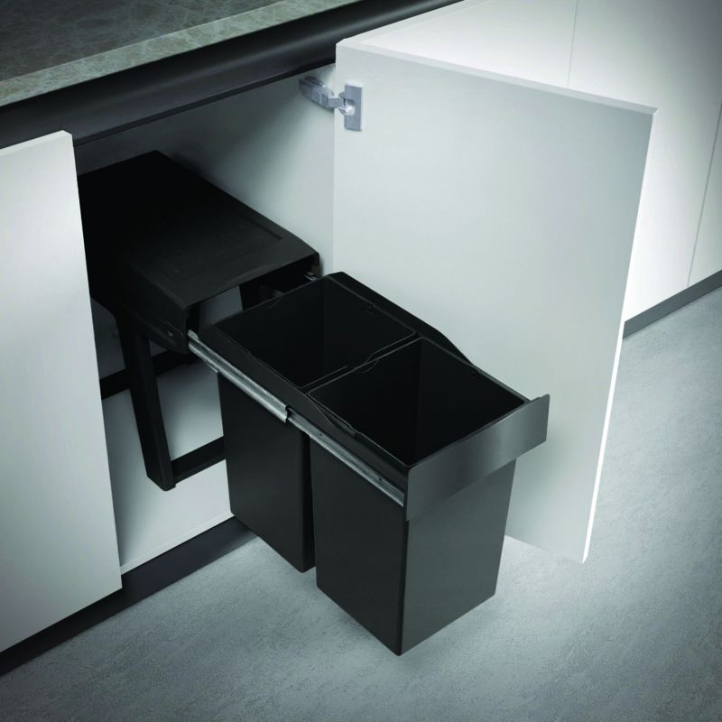 Poubelle pour meuble de 300mm composée de 2 seaux: 2 x14L - l.255mm x P.450 x H.400mm