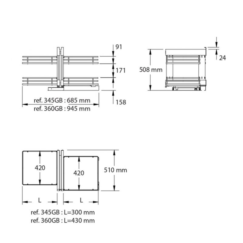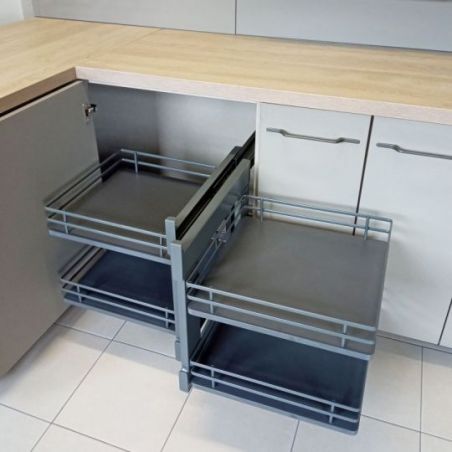 Aménagement de meuble d'angle réversible composé de 4 paniers pour meuble de 900mm - finition gris orion