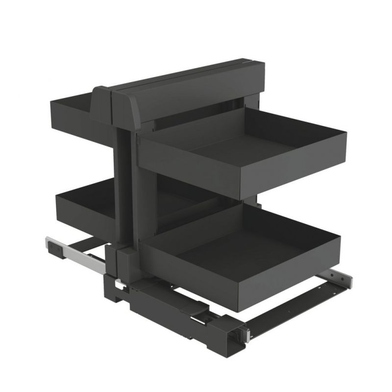 Aménagement de meuble d'angle réversible composé de 4 paniers en acier pour meuble de 900mm - finition gris orion