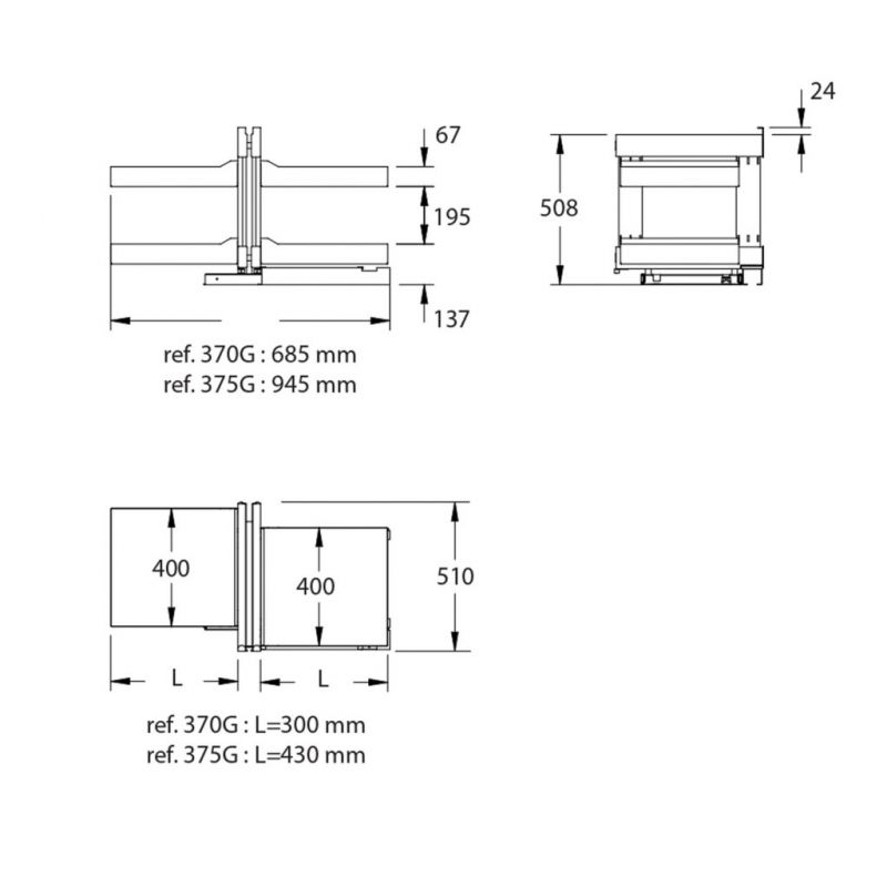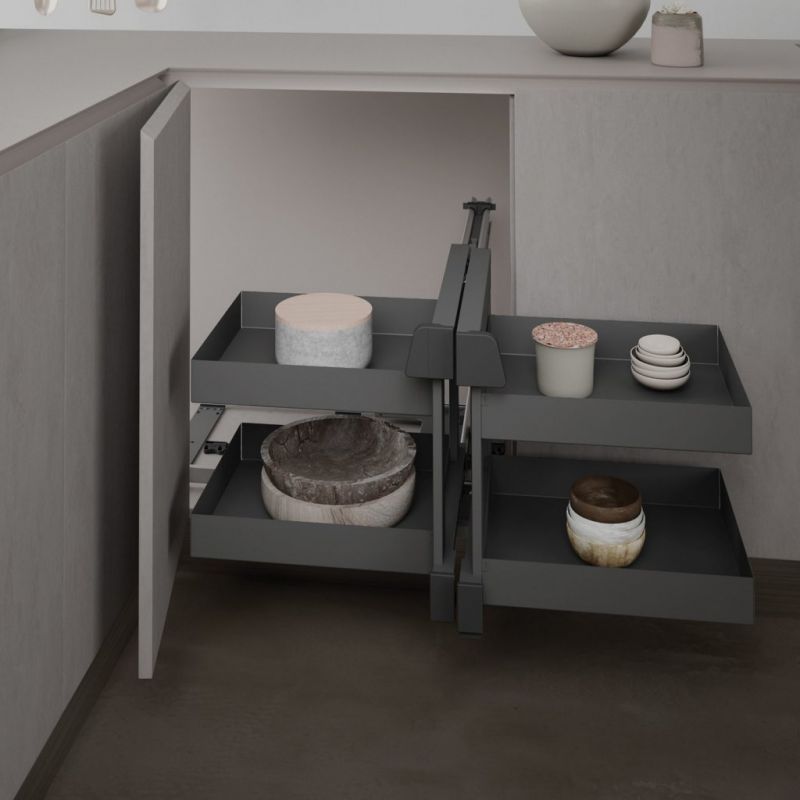 Aménagement de meuble d'angle réversible composé de 4 paniers en acier pour meuble de 1200mm - finition gris orion