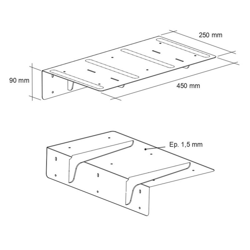 Support PLAK pour plan de travail - 450x250mm - Finition inox AISI 304