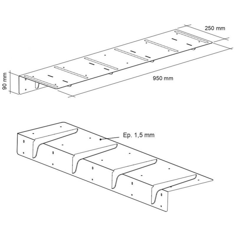 Support PLAK pour plan de travail - 950x250mm - Finition inox brossé AISI 304