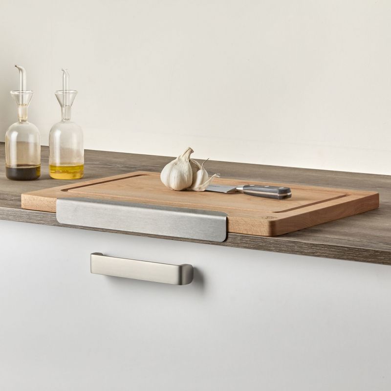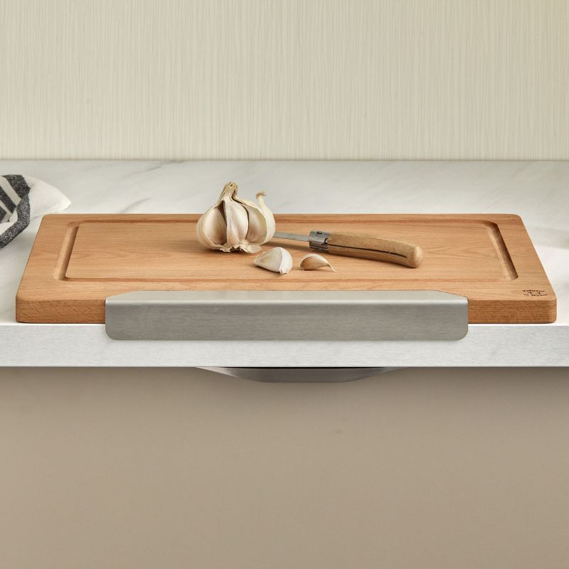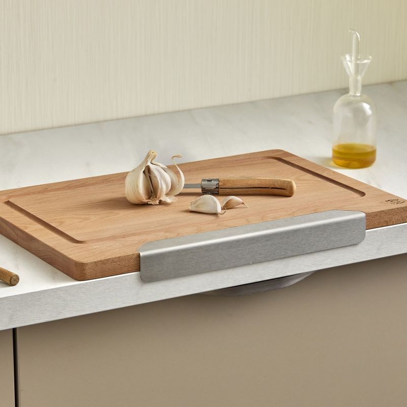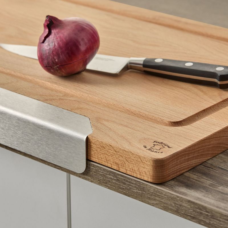 Au-delà de sa fonctionnalité, cette planche séduit par son design inspiré du style scandinave où bois massif et inox se marient avec harmonie. La languette en acier plié, aux angles arrondis, assure non seulement un maintien impeccable mais apporte également une touche esthétique originale. Plus légère et maniable qu’une planche traditionnelle, elle offre un confort d’utilisation quotidien tout en restant robuste et durable.