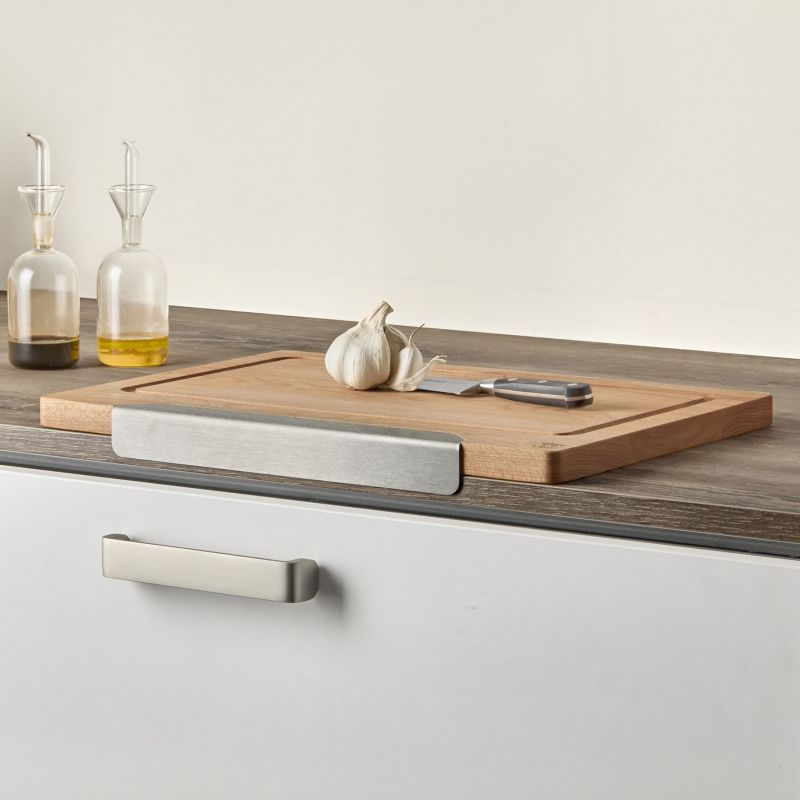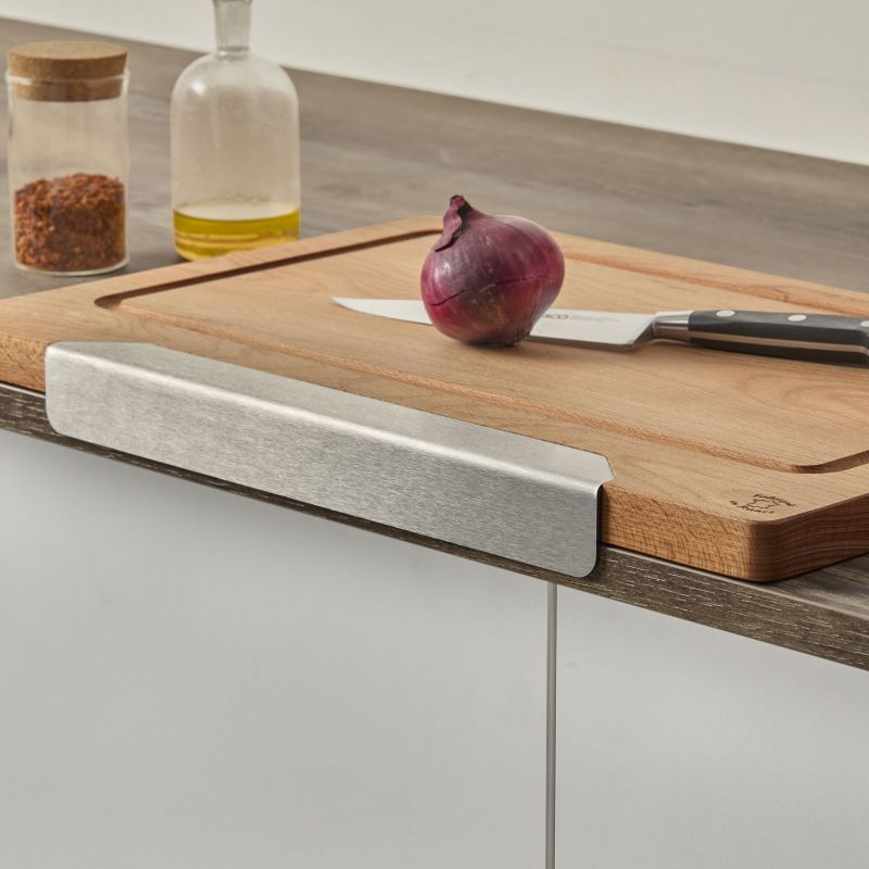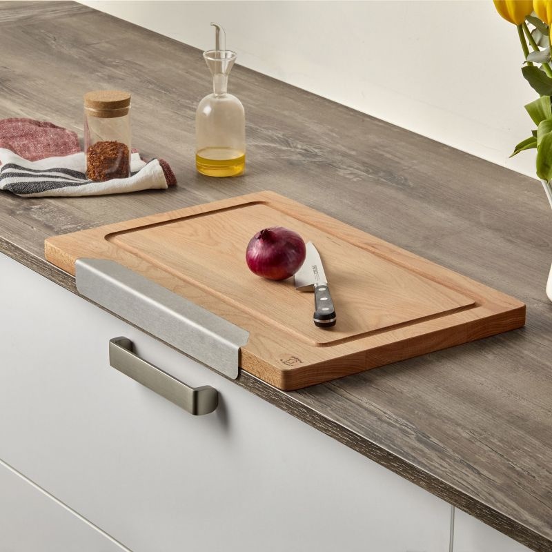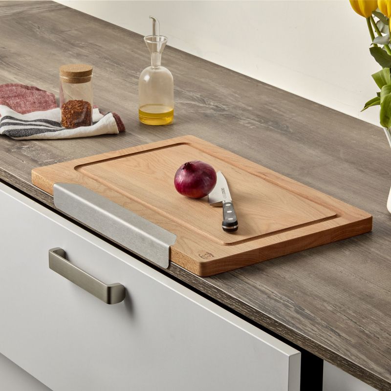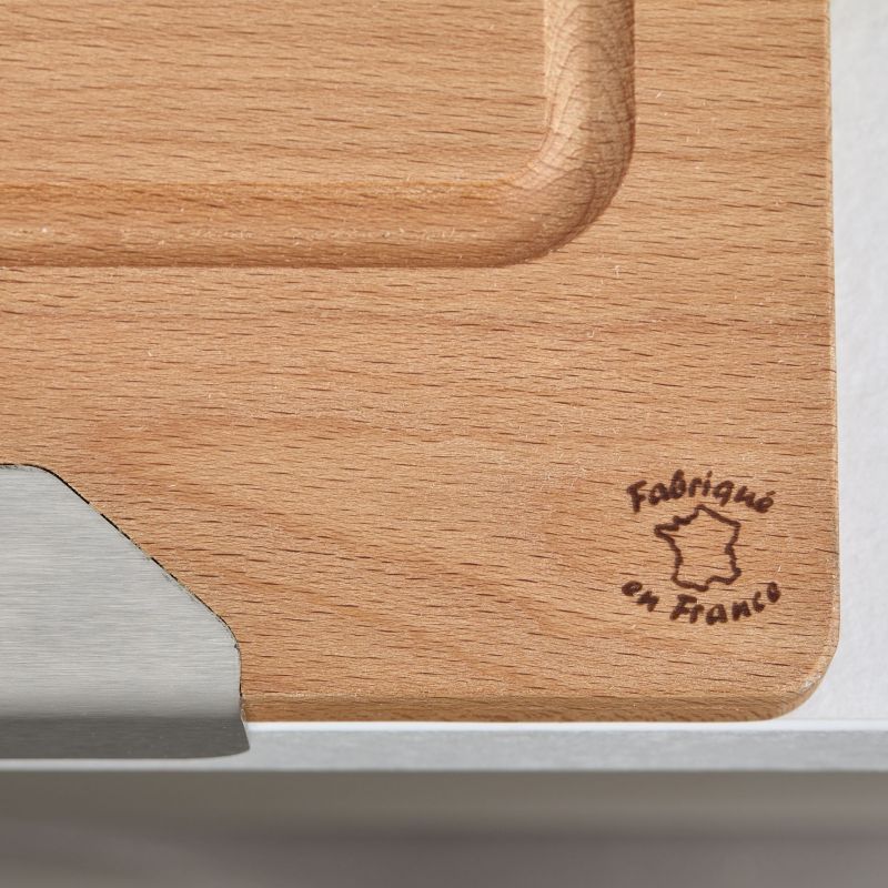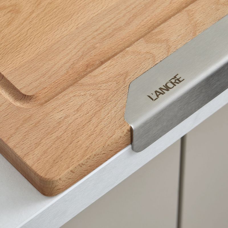 Planche à découper ANCRE - Hêtre - 450x300x23mm - Forme permettant de la caler sur le bord du plan de travail