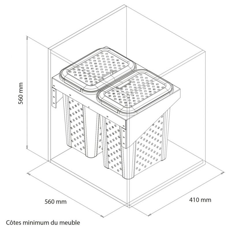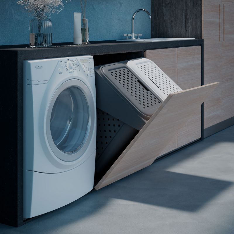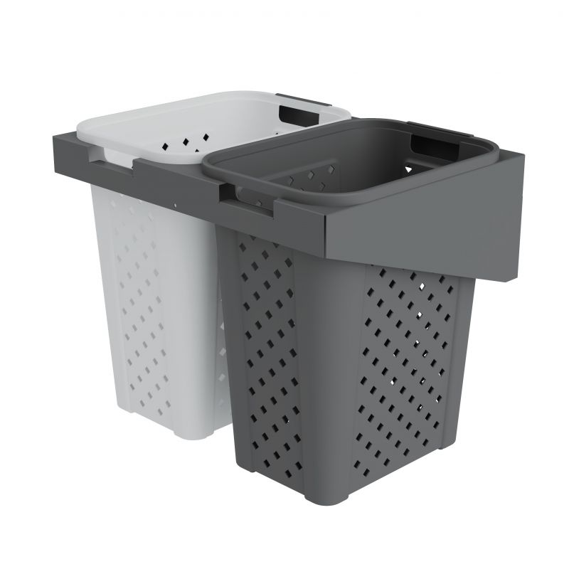 Paniers à linge pour porte basculante de 600mm - Finition blanc et gris - 2 bacs plastiques (2X30L)