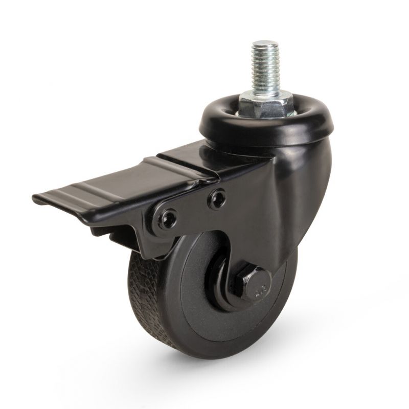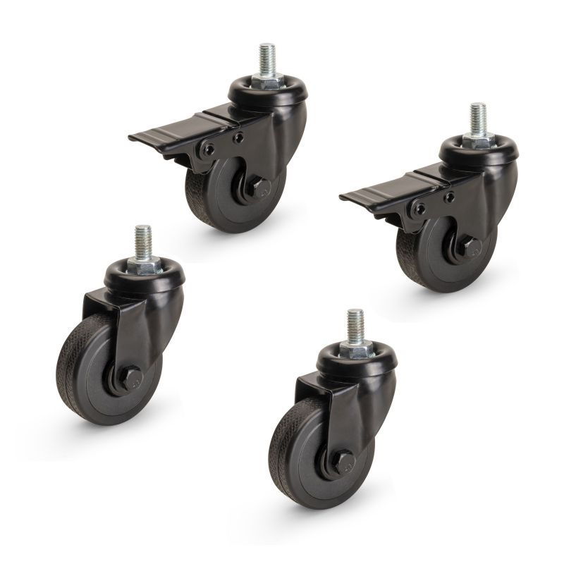 Kit de 4 Roulettes Black avec boulon, 2 avec frein et 2 libres, diamètre 50mm, Noir