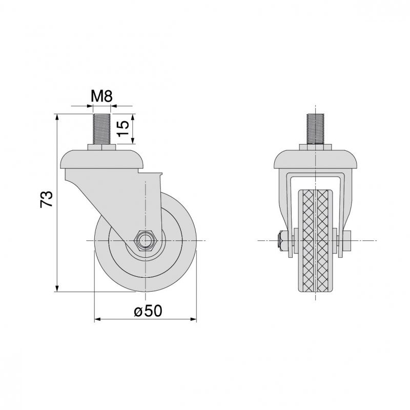 Chaque roulette est équipée d’un roulement à billes de qualité et d’une bande de roulement en caoutchouc noir qui assure un glissement souple, sans vibration ni bruit désagréable sur les sols. D’un diamètre de 50 mm, elles supportent jusqu’à 35 kg chacune, garantissant une stabilité et une solidité à toute épreuve, même en usage intensif.