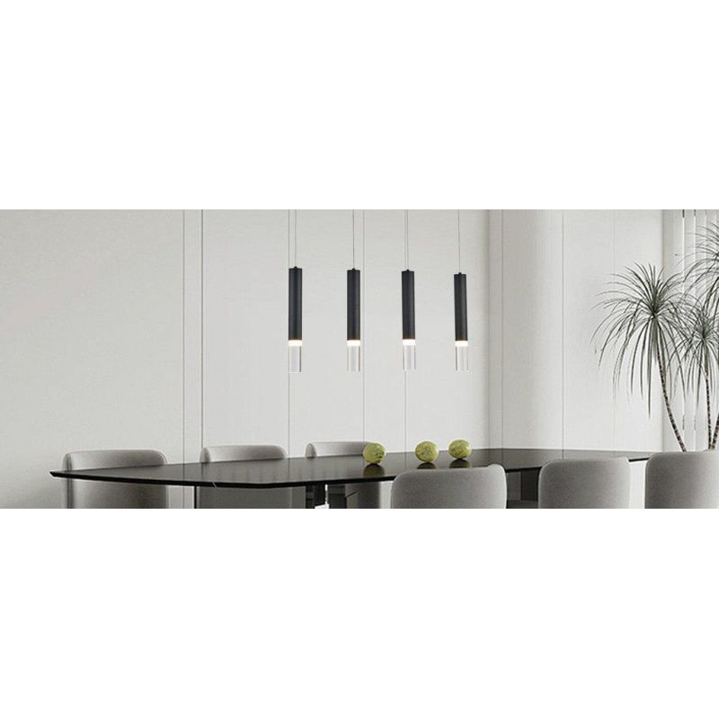 Le luminaire suspendu Gwen 4 LED se présente dans un élégant boîtier en aluminium en forme de barre avec un couvercle en plastique blanc. Quatre éléments lumineux suspendus côte à côte s'intègrent avec style dans l'aménagement de la cuisine. Le plafonnier à quatre lampes peut être placé au-dessus d'une table à manger ou d'un comptoir. Il y diffuse une lumière agréable et claire. Un montage apparent est prévu à l'a...