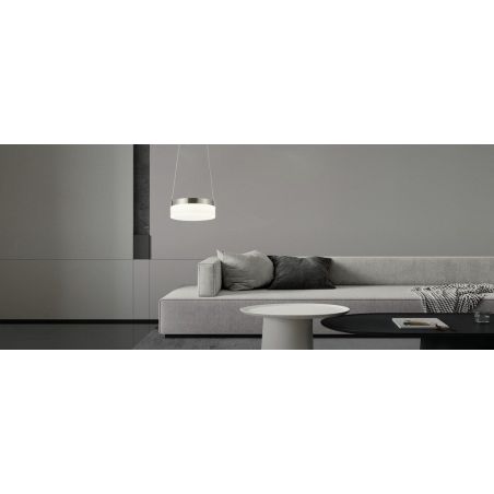 Luminaire suspendu. Boîtier en aluminium. Cache en matière plastique blanche, convertisseur inclus.