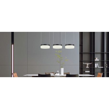 La suspension Nicky 3 LED apporte une lumière d'ambiance dans la cuisine et met en valeur l'intérieur grâce à son design moderne. Elle se distingue par ses trois lampes circulaires, son cache en plastique et son élégant boîtier en aluminium. Avec son look élégant, cette lampe suspendue embellit tous les aménagements de cuisine et met habilement en scène l'îlot de cuisine et la table à manger. Pour pouvoir l'adapte...