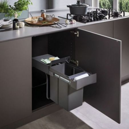WESCO® Poubelle encastrable 30DT avec bac de rangement, Système de collecte des déchets, gris orion
