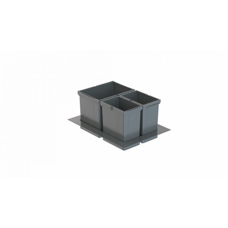 La poubelle Pullboy Versa 265 S/500-3 à profondeur d'encastrement minimale permet de trier efficacement les déchets ménagers et les matériaux recyclables. Elle s'installe rapidement et facilement dans les placards de cuisine grâce à son montage sur des glissières existantes. La poubelle offre un volume de 29 litres réparti sur trois bacs pour collecter et trier les déchets. Les deux petits bacs intégrés ont une capacité de 7 litres chacun, tandis que le bac intérieur plus grand a un volume de 15 litres. Afin de réduire les odeurs désagréables, le système de tri des déchets est équipé de couvercles individuels adaptés et peut être fermé en option avec un couvercle global. Celui-ci peut être fixé derrière la façade supérieure pour gagner de la place. Pour une bonne stabilité, le collecteur de déchets est livré avec un bac de fond pratique.
