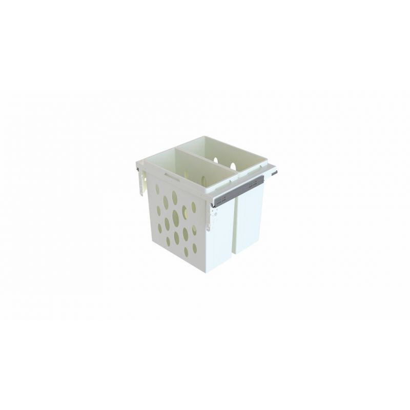 Le tiroir à linge compact WESCO® Pullboy Soft Comfort Laundry 550 K/600-2 permet de pré-trier le linge sale de manière peu encombrante. Le système de tiroir frontal est conçu pour des armoires de 600 mm de large et se distingue par sa faible profondeur d'encastrement de seulement 330 mm. Deux bacs étroits de forme carrée sont disposés l'un à côté de l'autre. Ils ont chacun une capacité de 32 litres, ce qui donne un volume total de 64 litres. Grâce aux poignées intégrées, les bacs peuvent être facilement retirés de leur support pour remplir le lave-linge. Les trous latéraux dans les parois assurent une bonne aération du linge. Le collecteur de linge se ferme de manière particulièrement silencieuse et confortable grâce à la technologie d'amortissement et de fermeture en douceur intégrée. Ses composants sont fabriqués en plastique blanc et sont conçus pour durer. Pour le montage, le système d'extension complète est fixé à la paroi latérale et au panneau avant de l'armoire.