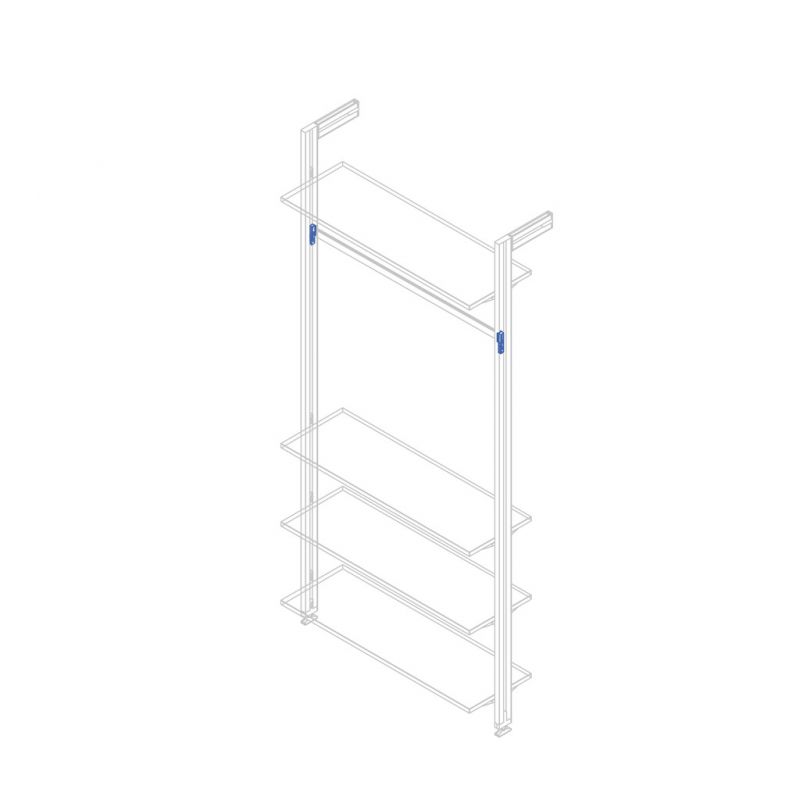 Profils et accessoires pour combiner les accessoires entre eux pour créer des étagères modulaires. Les profils sont fabriqués en aluminium et les raccords et supports en Zamak, le tout avec une finition peinture noire texturée (RAL 9005). Grâce à sa simplicité et à son design, vous pourrez adapter le système Zero rapidement à tout type d'environnement : maison, dressing, bureau et boutiques. Vous pourrez combiner différents éléments pour créer votre composition idéale : étagères en bois, modules de verre, petites armoires et tringles.