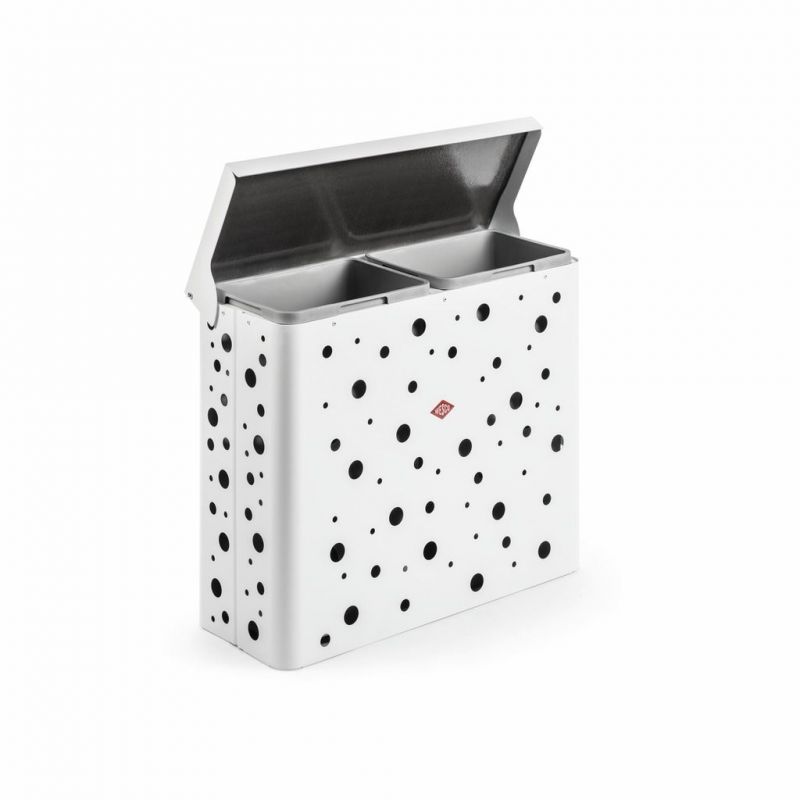 Les produits WESCO se caractérisent par l'aspect enjoué des solutions fonctionnelles pour le quotidien. Avec son design à pois, le récipient métallique solide du panier à linge est un garant de bonne humeur. L'insert léger a un volume de 32 litres. Les variantes Duo comprennent deux inserts. La différence entre Duo 1 et Duo 2 réside dans les dimensions : dans la variante 1, les côtés larges des inserts affleurent, dans la variante 2, ce sont les côtés fins. Grâce à cette flexibilité, la solution grand volume trouve sa place même sur des plans d'aménagement plus petits.