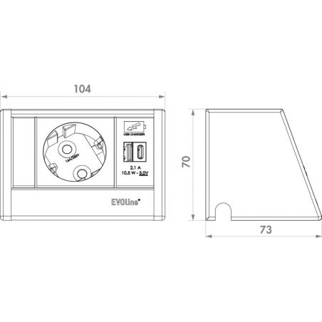 Élément de prise, y compris guidage de câbles. 1 fois. Avec double chargeur USB A + C (station de charge). Les éléments de fixation pour les pièces de meubles en bois et en métal sont compris dans l'étendue de livraison.