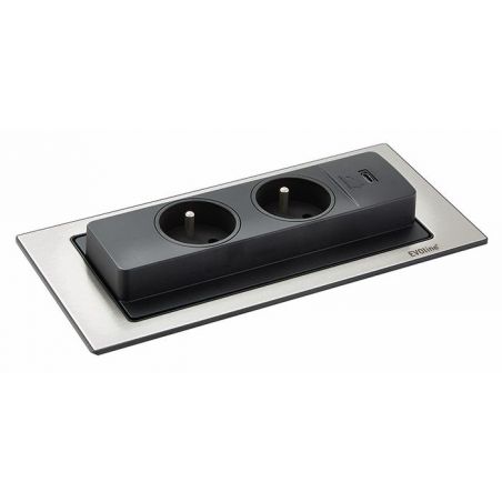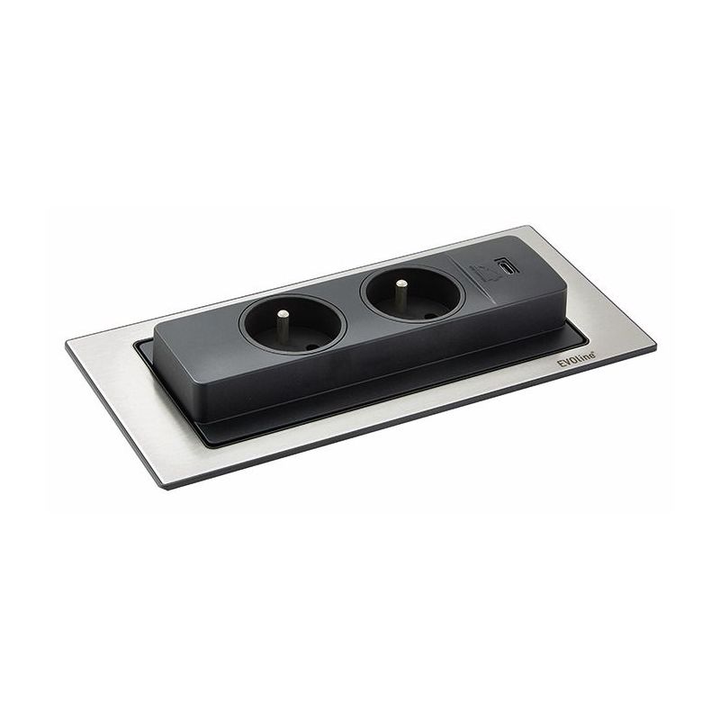 Evoline® BackFlip USB C, Élément de prise, avec prises françaises/belges, montage affleurant H 2,6 mm, acier inox
