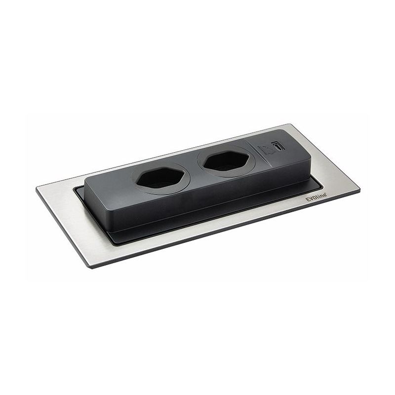 Evoline® BackFlip USB C, Élément de prise, prises suisses, montage affleurant H 2,6 mm, acier inox