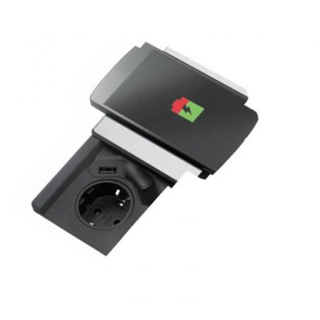 Élément pour prise. 1 fois. Avec chargeur USB (station de charge). Une fois fermé, l'élément est presque à niveau avec le plan de travail. En faisant glisser le couvercle, on libère la prise de courant.