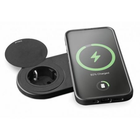 La station de recharge Evoline® One DisQ Qi combine des fonctionnalités modernes avec un design compact et élégant en noir mat. La prise se fond discrètement dans le décor et, lorsqu'elle est fermée, elle est pratiquement au même niveau que le plan de travail. Grâce à la surface de charge Qi intégrée, elle permet de recharger sans fil des appareils mobiles dans la cuisine. Grâce à la fonction de maintien magnétique, l'appareil peut être positionné de manière stable pendant le chargement. La prise de courant avec fiche Schuko amovible permet également de brancher divers appareils de cuisine. Pour faciliter le passage des câbles, la sortie de câble est située sur le côté inférieur. La station de charge se fixe directement sur le plan de travail et se ferme à l'aide d'un couvercle pivotant.
