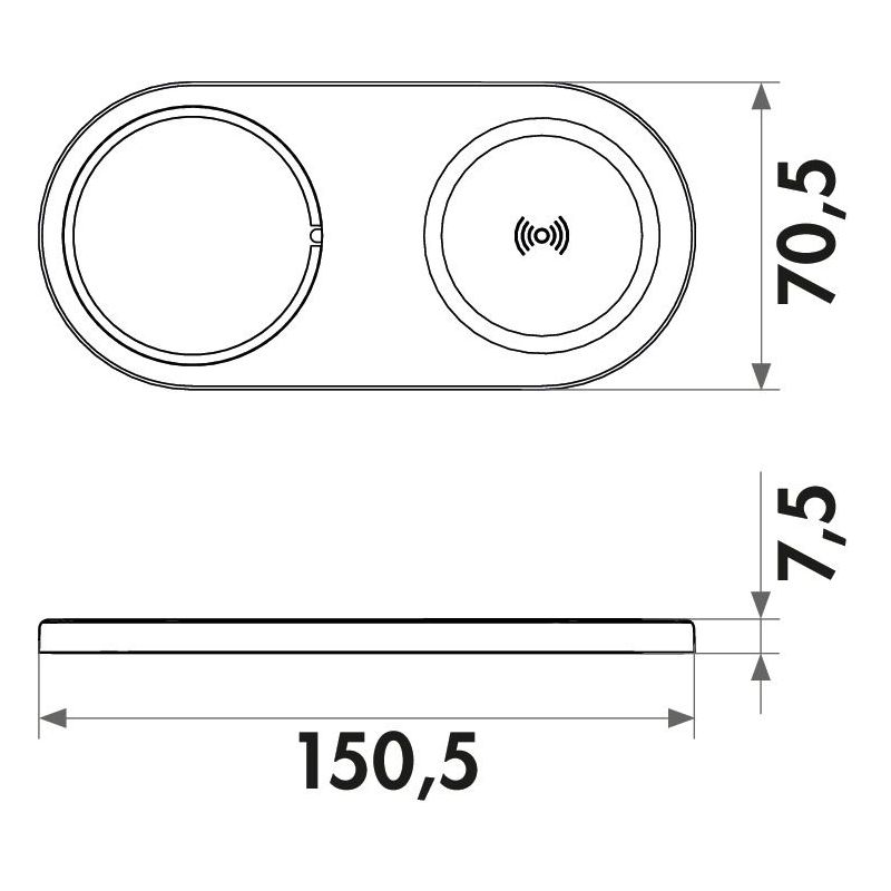 - avec surface d'appui pour la recharge par induction Qi (Wireless Charger). Chargement sans fil des téléphones portables grâce au standard Qi avec 15 watts maximum et fonction de maintien magnétique.