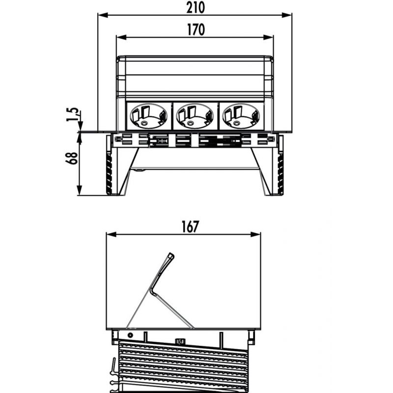 Avec la prise encastrable CON-AKTIV Evoline® FlipTop Push escamotable, la source de courant la plus proche pour le mixeur plongeant ou le grille-pain est toujours à portée de main. Elle s'encastre dans le plan de travail de la cuisine et est équipée de trois prises de courant avec contact de protection. Lorsqu'il n'est pas utilisé, l'élément se rétracte très facilement en fermant le couvercle. Il suffit d'effleurer légèrement le couvercle pour l'ouvrir. Lorsqu'elle est fermée, la prise rectangulaire à trois positions s'intègre dans le plan de travail de manière affleurante et avec une élégante surface en acier inoxydable. Grâce à l'insertion pratique d'une brosse dans la façade, le cache peut être fermé même lorsque des câbles sont enfichés. Cela permet d'éviter les risques d'éclaboussures d'eau ou d'autres salissures lors de la préparation des repas. L'insert de la prise est fabriqué en plastique robuste de couleur noire. La sortie de câble se trouve à l'arrière gauche. Le montage s'effectue dans des plans de travail d'une épaisseur maximale de 50 mm. La profondeur totale de montage est de 68 mm. La fixation s'effectue par le bas. Un câble d'alimentation de 3 m avec fiche de sécurité est fourni pour le raccordement électrique. La gamme de prises CON-AKTIV Evoline® comprend de nombreuses autres variantes qui peuvent être combinées.