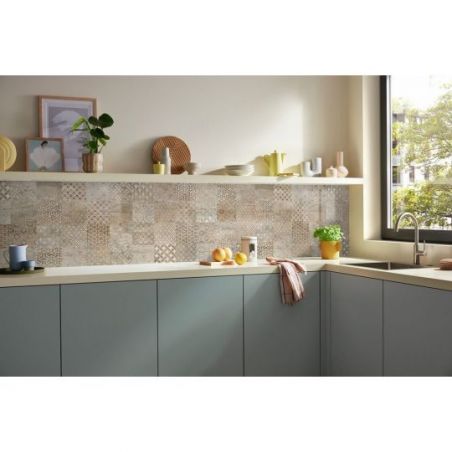 Crédence murale PICit® 132 - Carrelage effet patchwork tons brun, aluminium, 3.5 mm, brillant