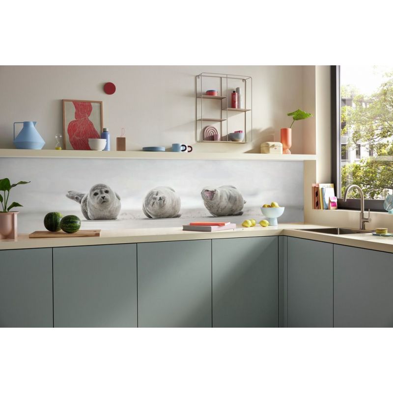 Crédence murale PICit® 147 - Phoques sur la plage, aluminium, 3.5 mm, mat