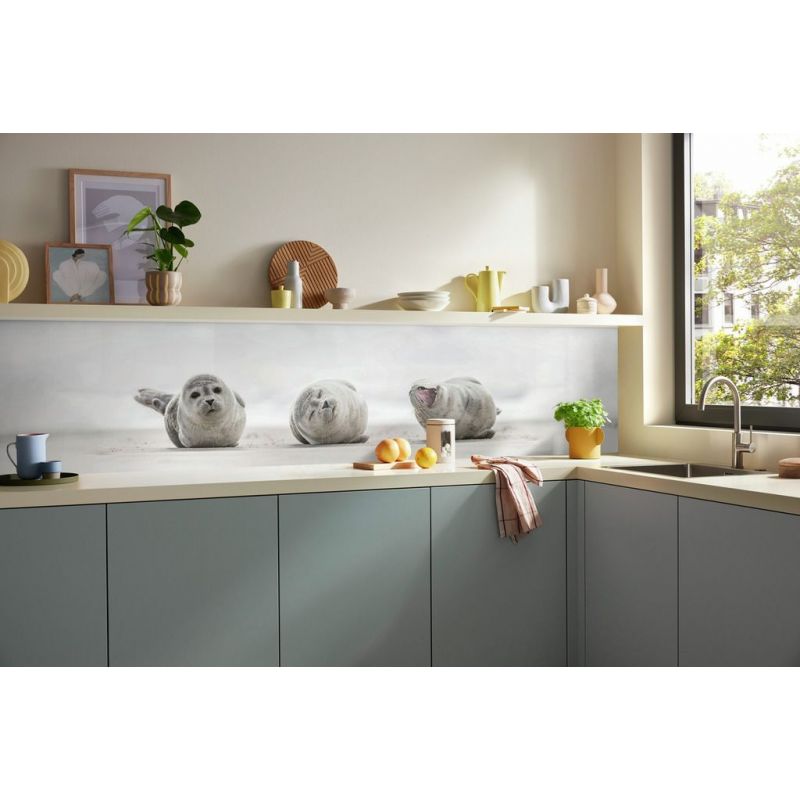 Crédence murale PICit® 147 - Phoques sur la plage, aluminium, 3.5 mm, brillant