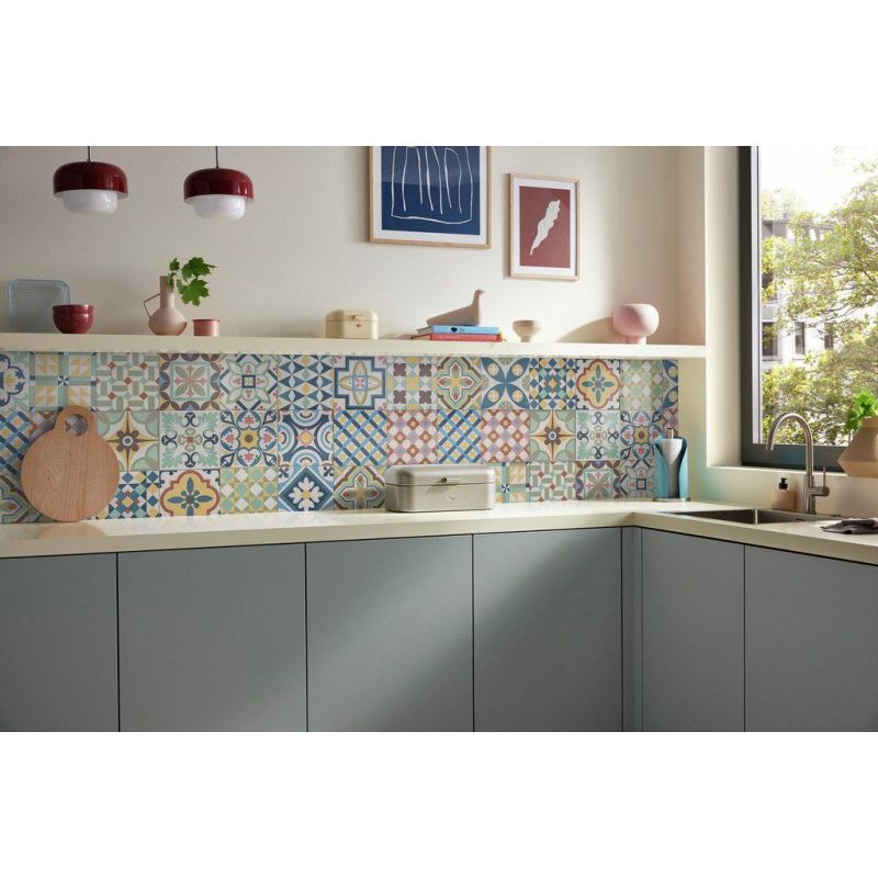 Crédence murale PICit® 134 - Carrelage effet patchwork multicolore, aluminium, 16 mm, brillant