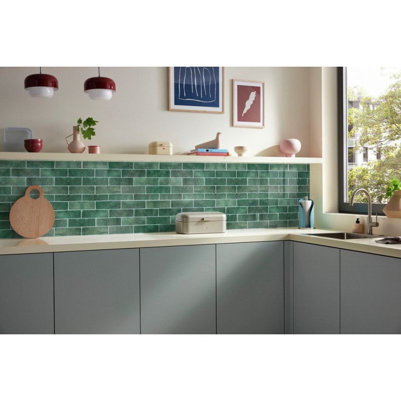 Crédence murale PICit® 136 - Mur en brique tons vert, aluminium, 16 mm, brillant
