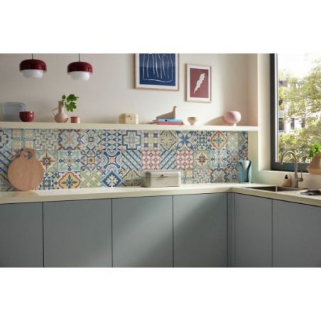 Crédence murale PICit® 134 - Carrelage effet patchwork multicolore, acrylique, 16 mm, brillant