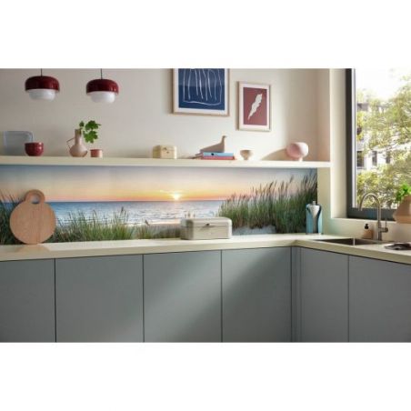 Apportez une touche d'élégance et de modernité à votre cuisine avec la crédence PICit®. Son impression numérique de haute qualité et ses couleurs sobres et raffinées s'intègrent harmonieusement à l'architecture de votre espace culinaire. Le laminé de protection anti-UV assure une durabilité optimale et un entretien facile, conservant l'éclat des couleurs et la beauté du design au fil du temps.