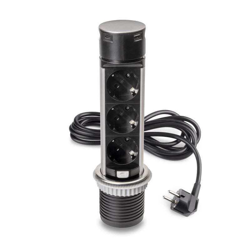 Conçue pour s’adapter aussi bien aux cuisines qu’aux bureaux ou aux espaces de vie, cette multiprise est équipée de prises Schuko puissantes (jusqu’à 3680 W – 16 A) ainsi que de ports USB de type A et C dédiés à la charge rapide de vos smartphones, tablettes et appareils électroniques. Pratique et ingénieuse, elle permet d’accéder uniquement aux ports USB en pressant la surface en acier inoxydable, sans avoir à déployer l’ensemble du bloc. Sa polyvalence en fait un accessoire indispensable pour profiter d’un espace organisé et fonctionnel.