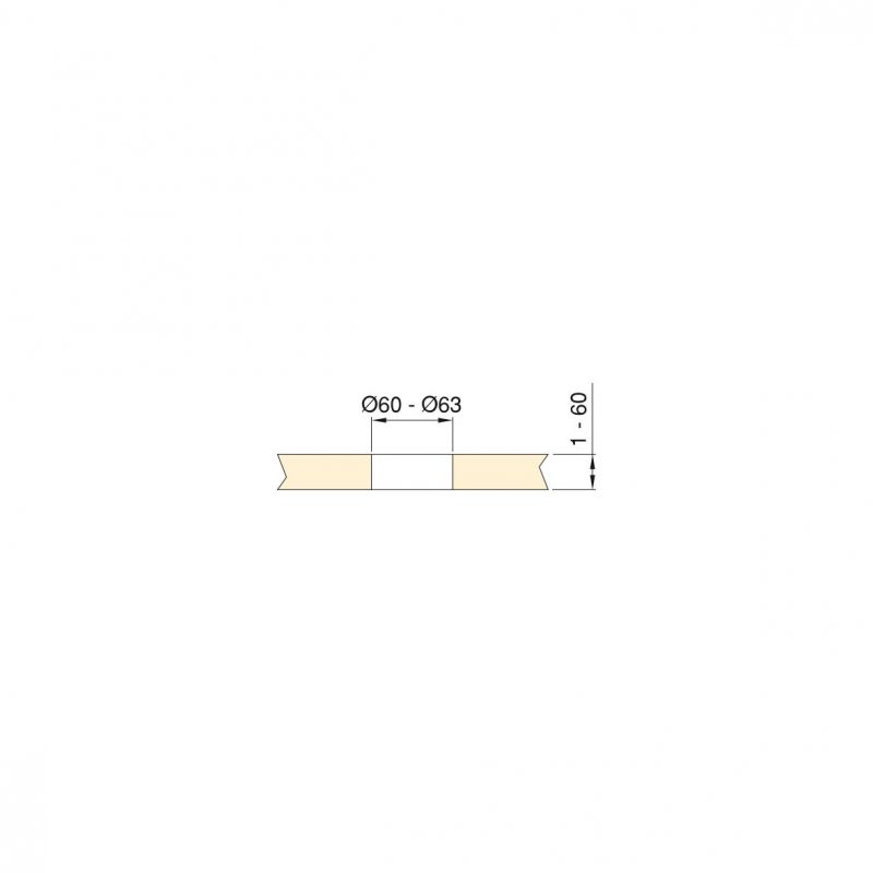 - - Nécessite un usinage de 60 mm de diamètre et se fixe sans outil grâce à son écrou manuel, sur des surfaces de 1 à 55 mm d'épaisseur.