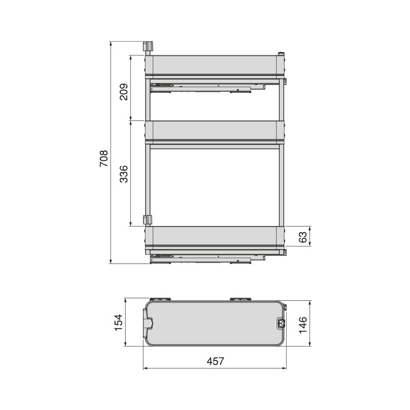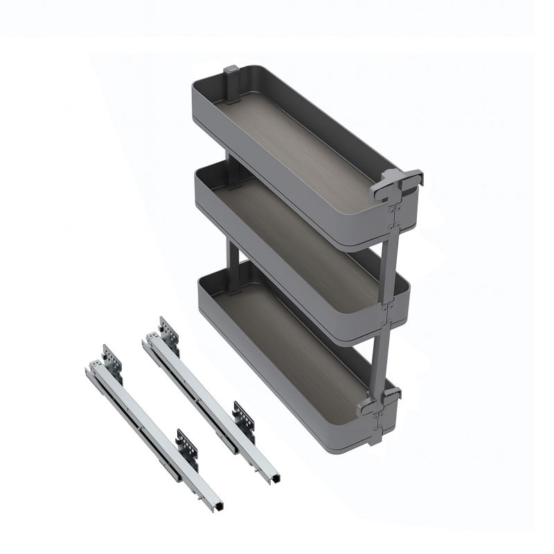 Son système coulissant à extraction totale et fermeture douce garantit une manipulation fluide et silencieuse, tout en permettant un accès complet au contenu. Malgré ses dimensions compactes, il supporte jusqu’à 25 kg de charge, ce qui en fait un accessoire fiable et robuste. Grâce à son réglage de porte en 5 dimensions, l’intégration dans votre meuble est parfaitement ajustée, pour un alignement soigné et harmonieux avec la façade.